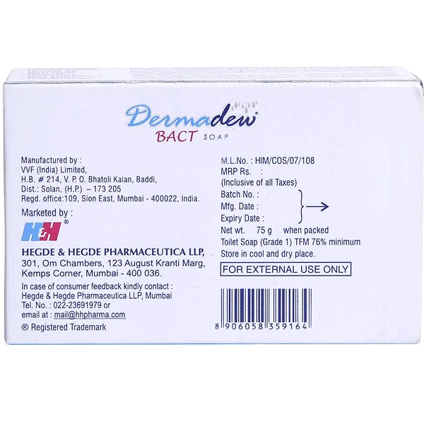 - Dermadew Bact Soap is an anti-bacterial soap that can replace regular bar soap